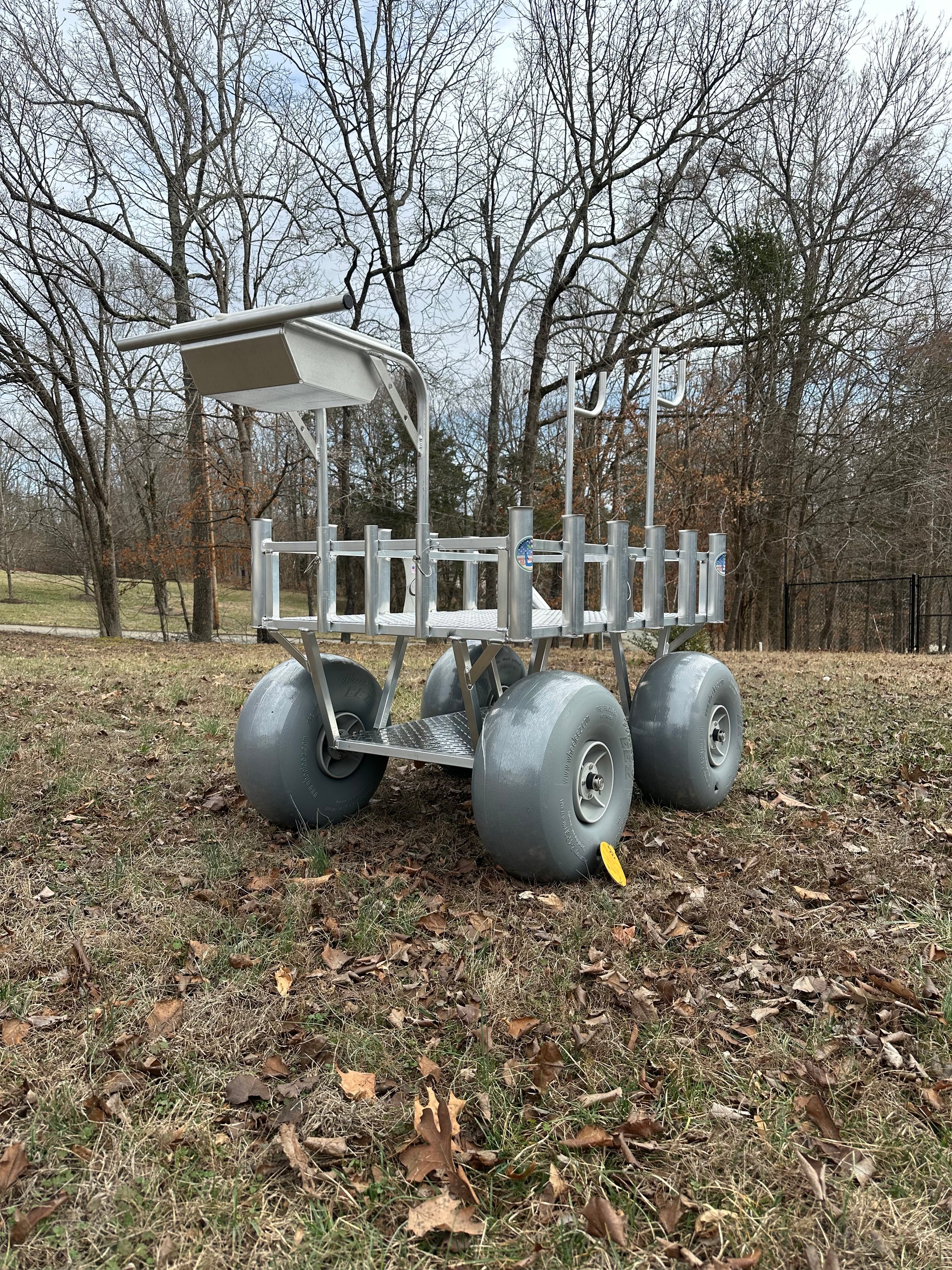 The Deerfield HD Shark Cart is engineered for anglers who bring serious gear to the beach. Massive storage capacity, oversized balloon tires, and heavy-duty aluminum construction make this the ultimate surf fishing machine.